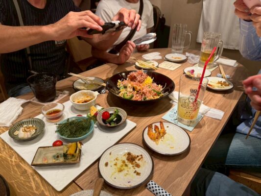 宮古島の郷土料理を食べて、誰が上手に写真が撮れるか勝負したり